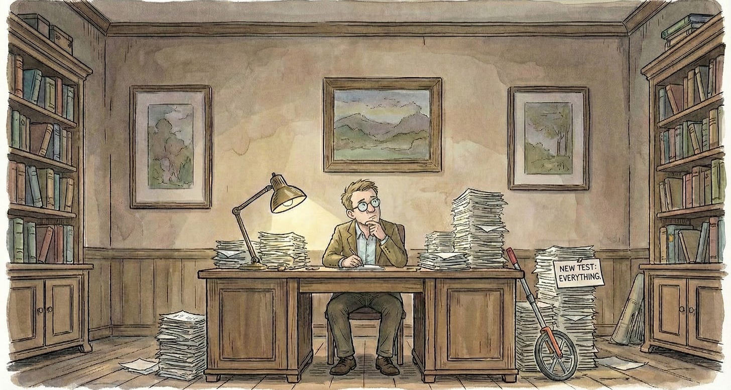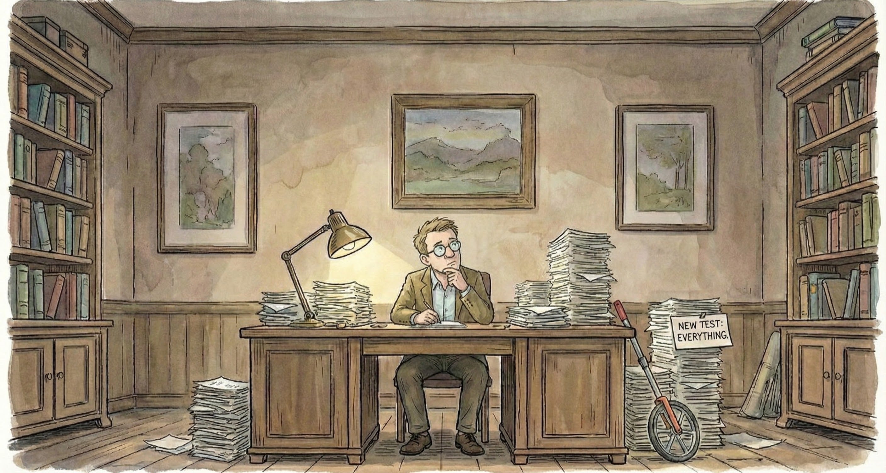 I used to be an assistant professor, a role that is arguably the highest calling of the intellect, provided one enjoys the specific thrill of formatting grant application bibliographies on weekends. One thing you learn while grading scripts at 2am, sustained by lukewarm tea and the sunk cost fallacy, is that writing a rubric is an exercise in hubris. You construct a Platonic ideal of the “correct answer”. Then a student (usually one who treats lecture attendance as a purely theoretical concept) derives the solution using a method revealed to them in a fever dream. The rubric stands revealed as a monument to your own lack of foresight. This is intellectually stimulating in the abstract, but practically disastrous when you have forty papers left to grade and your red pen is running dry. A wrong answer is mercifully quick to process, but a novel right answer is an act of violence. It forces you to halt the assembly line and actually think, a requirement that, at 2am, borders on the unreasonable.